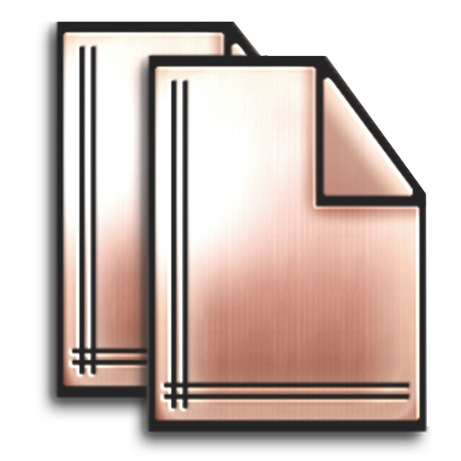 A tiny architectural detail carved into the façade of the fabulous Art Deco building which originally housed The Fox Theatre in Spokane, Washington (and which now houses the Spokane Symphony Orchestra) was the starting inspiration for this series. Evidence of this is only reflected in my version of the building as the User’s Home Icon and on a Diary Application Icon. What developed from that detail though is a multi-part set of brushed-satin copper icons with an art-deco touch which includes icons for basic system replacements, folders, devices, applications, dock, toolbar, clippings, locations, interior library folders, and more.